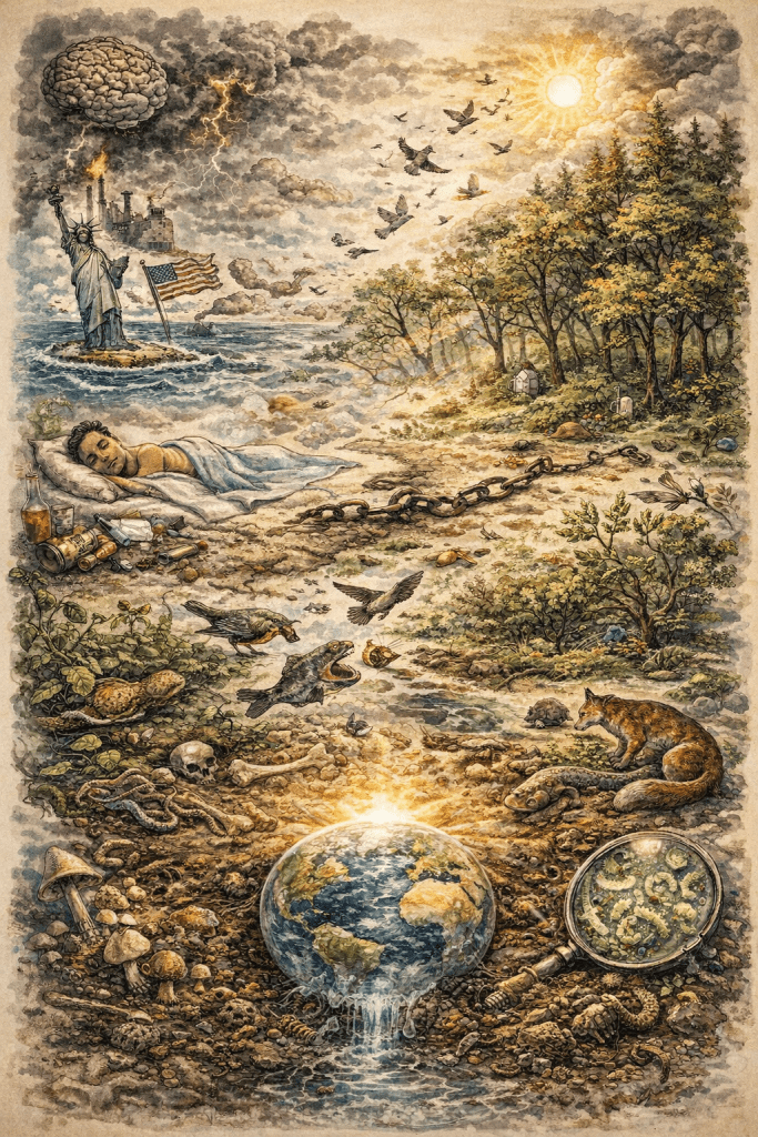 Unfettered worry running rampant xenophobic and what for my life’s a thousand mile island distraught by measurements only understood by Americans we can sneeze we can cough blow our noses in disgust but we must remember our health fatigued and lying down catching winks sand dusting our eyes falling backward into sleep confronting pieces of our day combining with other pieces of previous days looking for patterns resolutions conflictions addictions obsessions Conan’s assistant popped culture entertaining and coaxing jocularity hoping for hilarity and no more disparity flung into a purpose and feeling like it is worth it transfixed in a gaze able to stop for a long moment birds swooping flapping and singing trees swaying and changing exposing the pathways branches open to nests and eggs and babies and regurgitation a standing ovation for Mother Nature and The Creator’s Creator creatures most with eyes and brains but not all and possibly not most not even counting the ocean’s inhabitants all eating each other satisfying stomachs everything turning to shit or manure feeding the Earth cycles upon cycles upon cycles weather life chains of food struggling and fighting violence and blood and flames cleansing the microscopic levels of bacteria would be infectors of our guts there’s never enough but really there’s more than